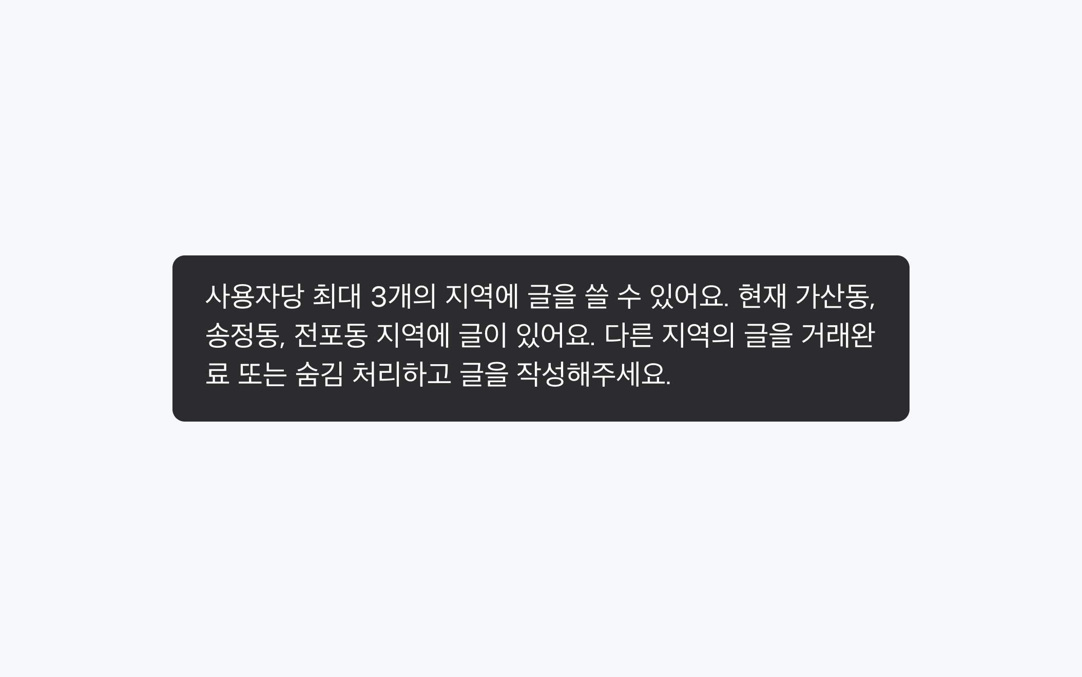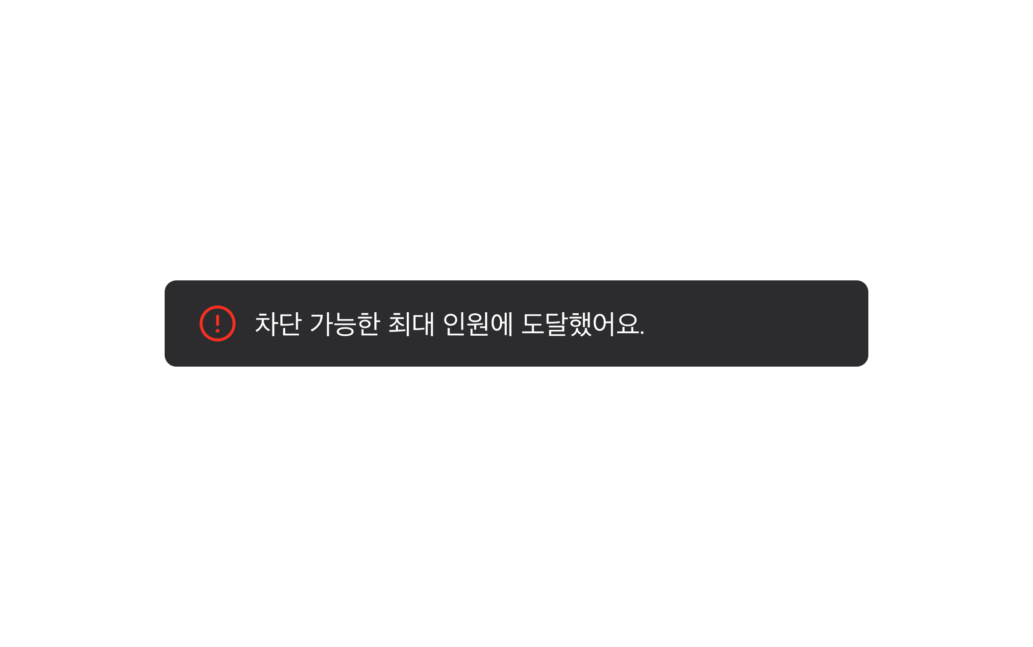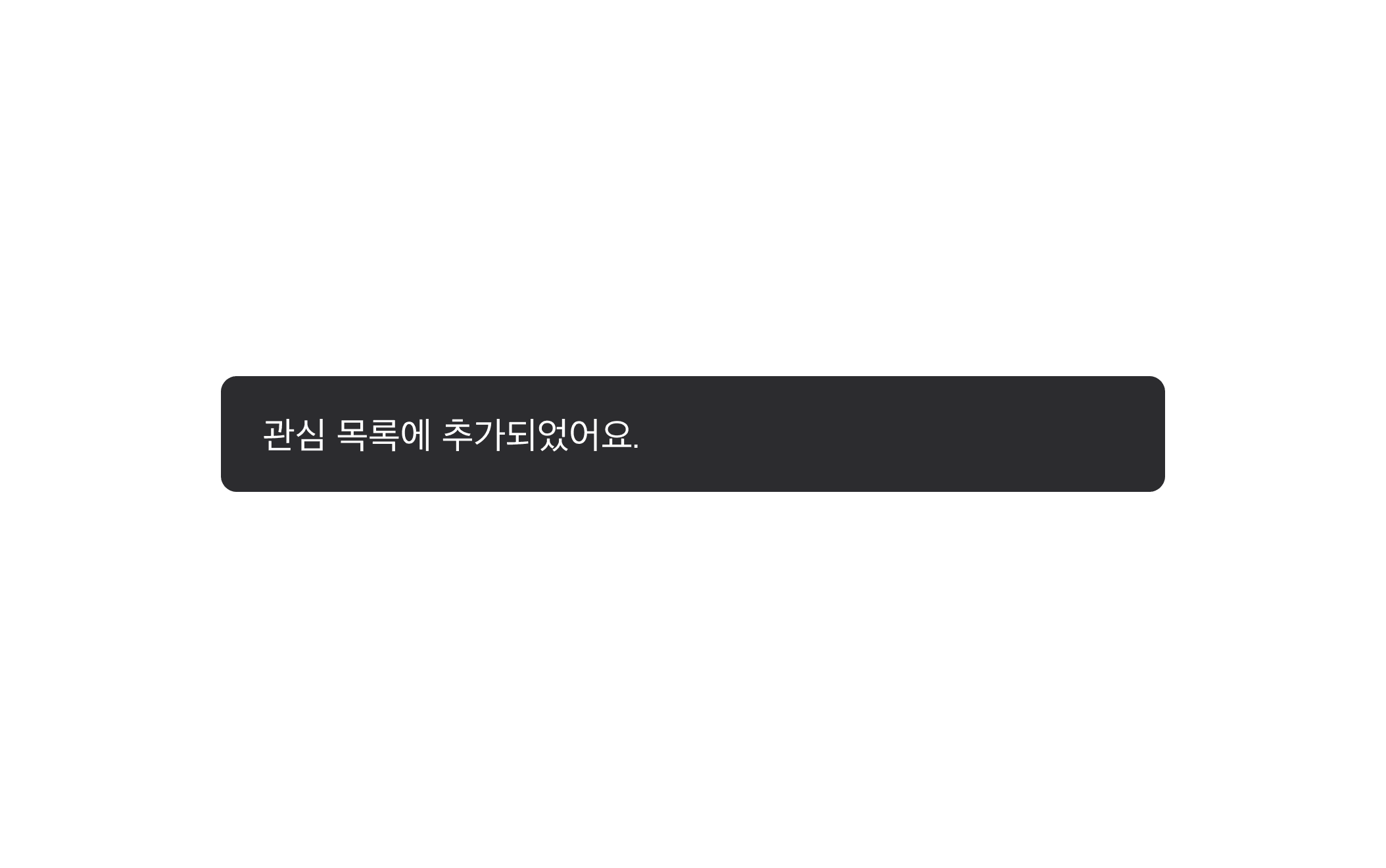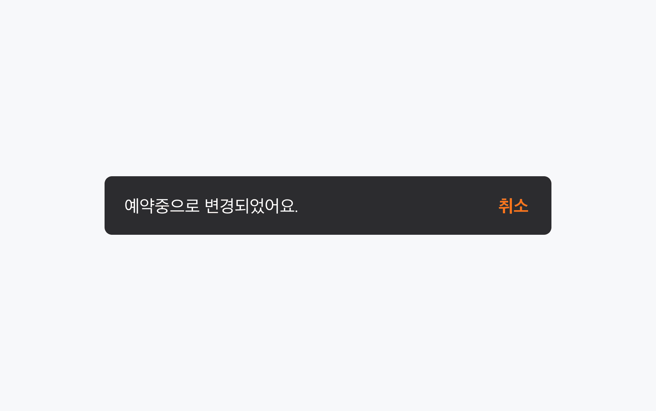 Snackbar의 문구는 2줄을 초과하지 않습니다. 불필요한 문장과 내용은 제거하며, 핵심 메세지만 전달합니다.