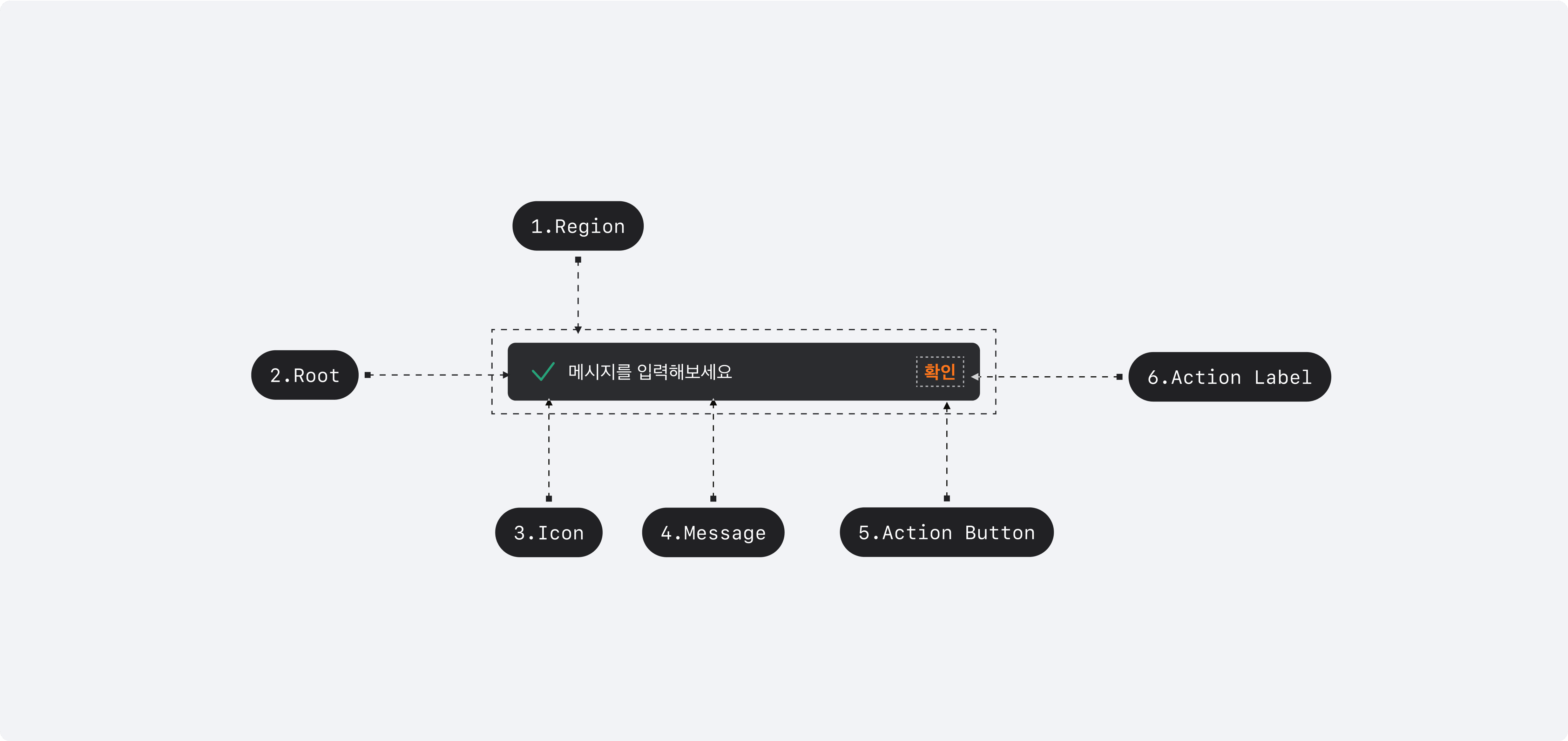 Snackbar는 반드시 메세지를 포함해야합니다. 어떤 일이 일어났는지, 혹은 일어나고 있는지 가능한 간결하게 작성합니다.