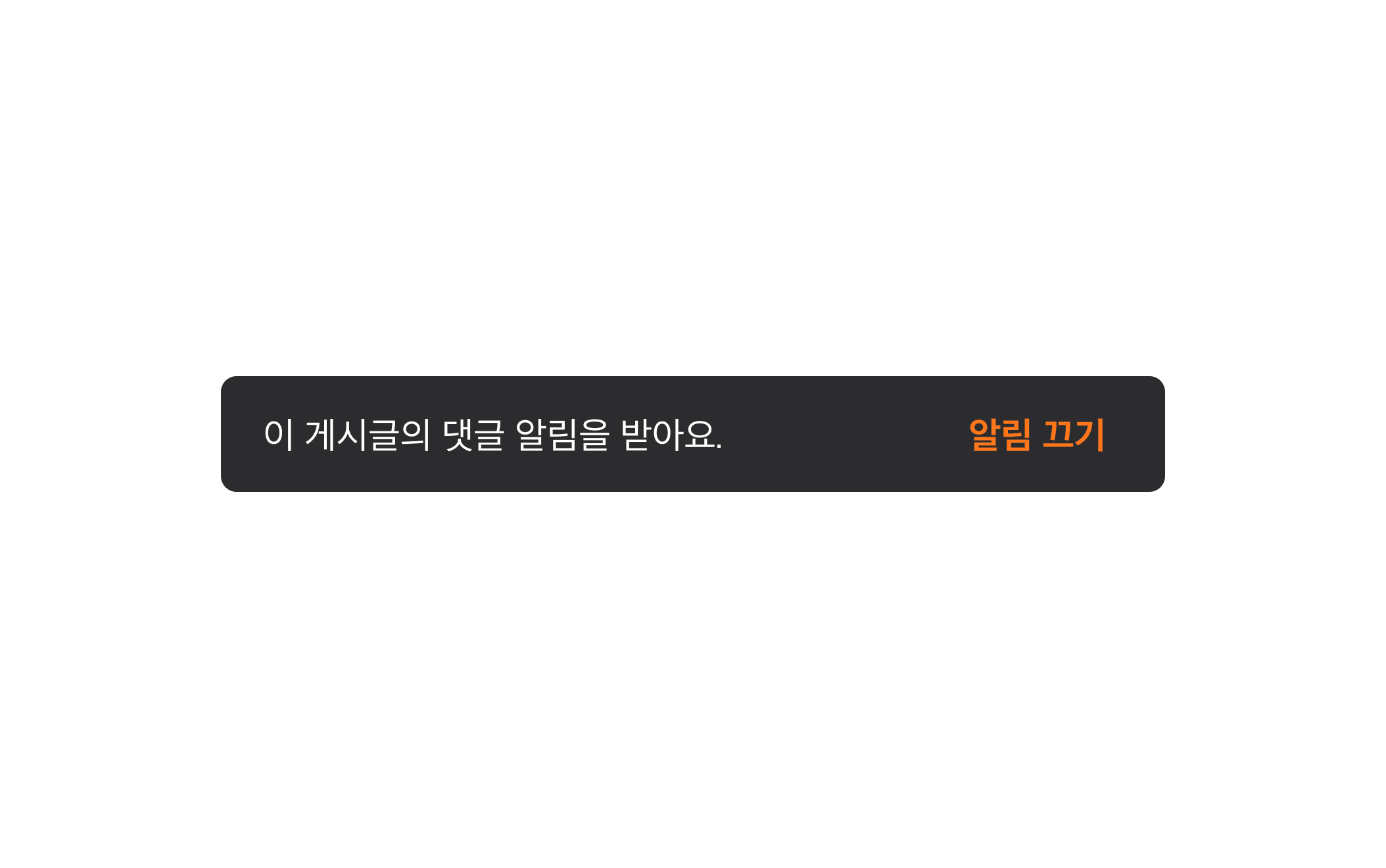 Snackbar는 유저의 액션(좋아요, 저장, 삭제 등)에 즉각적인 피드백을 줄 때, 혹은 앱 내 백그라운드 상태나 설정에 대한 알림일 때 사용합니다.