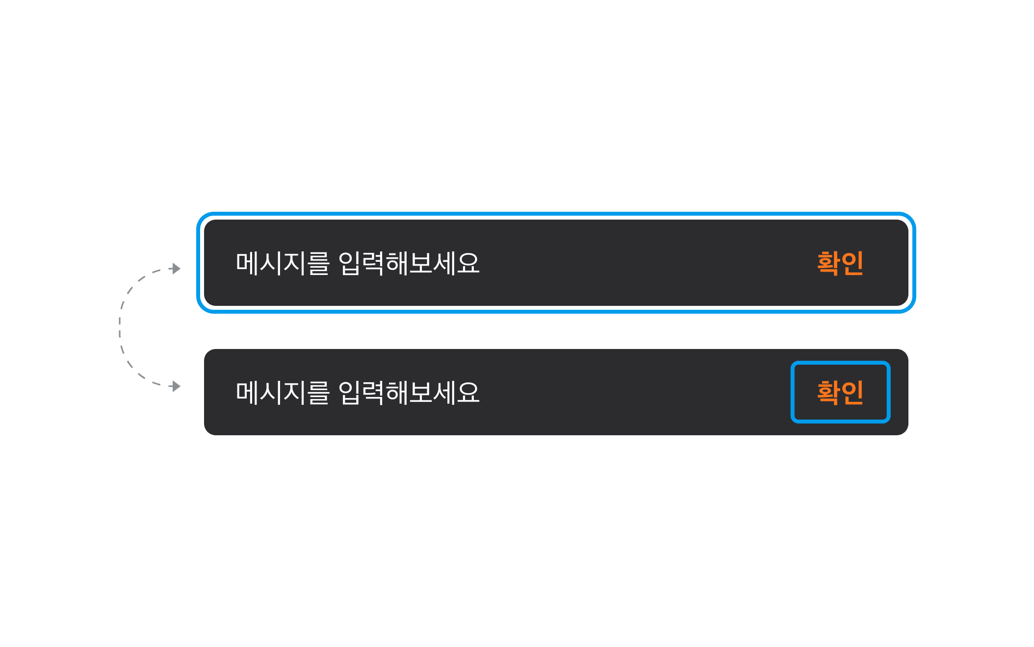 Action Label은 메세지와 연관되어 가능한 간결한 텍스트로 동작을 제시해야 합니다. Action은 1개만 노출할 수 있습니다.